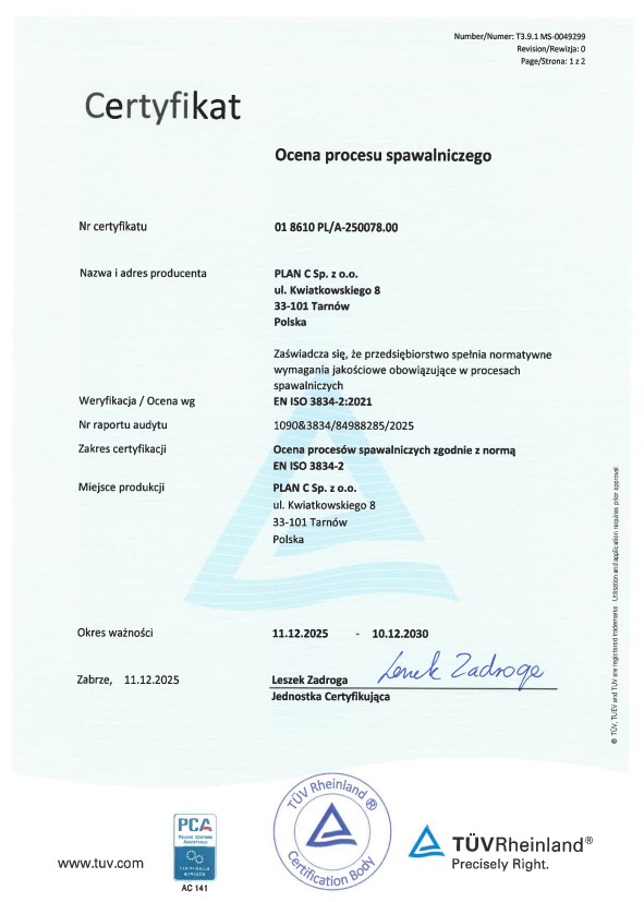 Pobierz certyfikat EN ISO 3834 (PDF)
